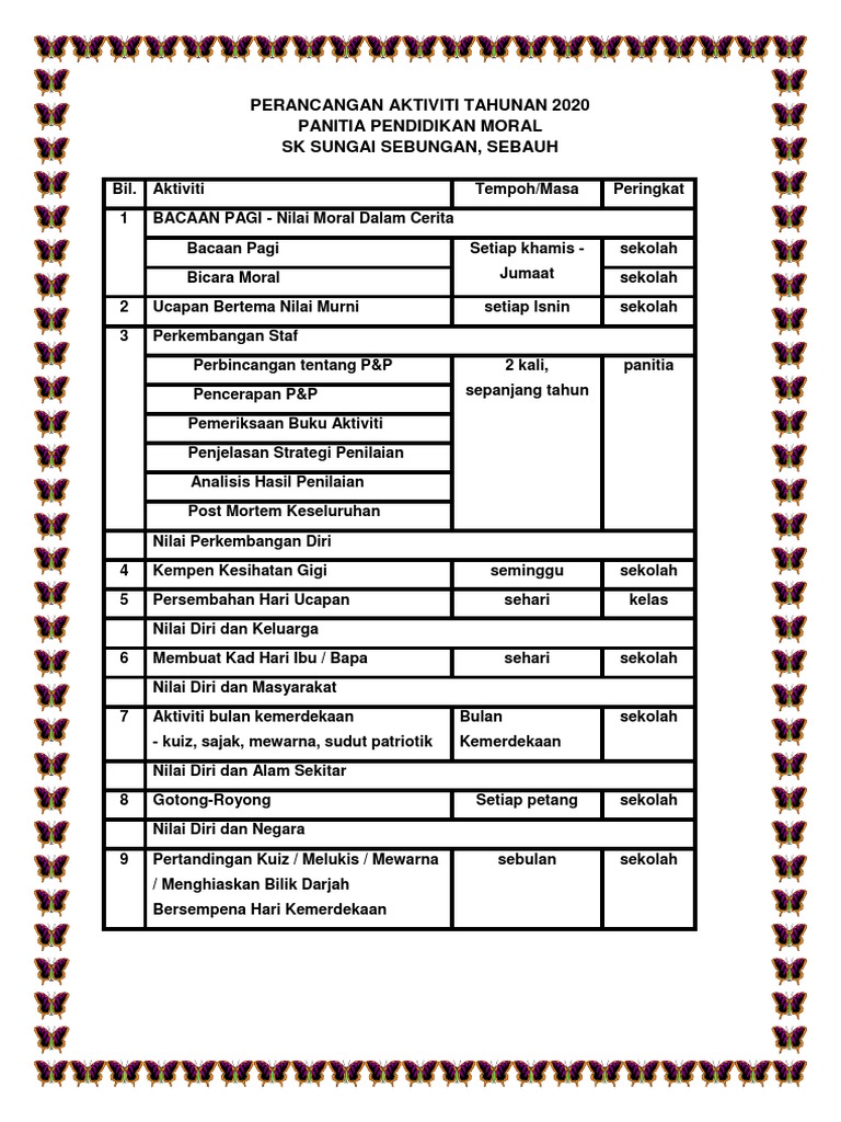 Aktiviti Tahunan Panitia Moral 2020 Pdf